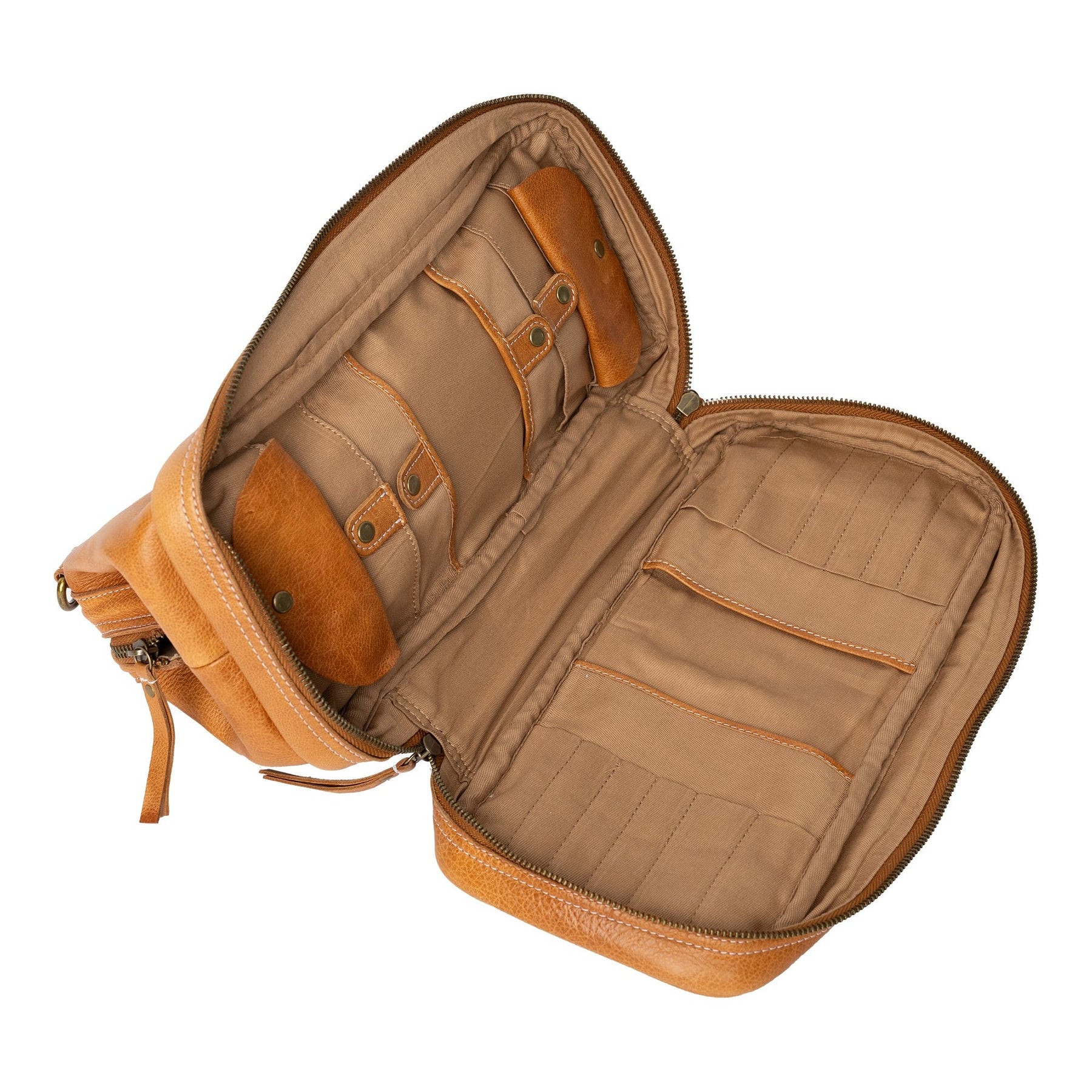 I ægte doktor-stil er denne elegante taske lavet af førsteklasses læder og har et dedikeret rum til dine rundpinde samt flere små lommer til tilbehør. Med en justerbar skulderrem er den nem at have med overalt.