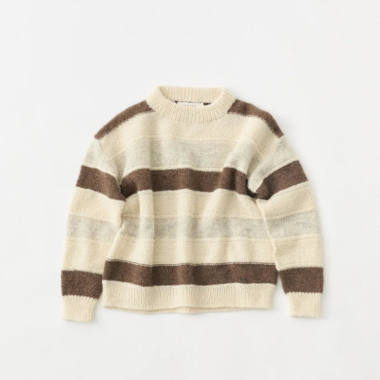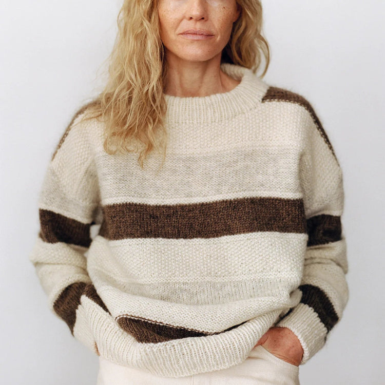 Med et GARNA garnkit til Olga Knit fra SKALL får du GARNA luksusgarn til en patchwork inspireret sweater hvor hver stribe er lavet med en ny teknik, nogle er strikket ret, andre vrang, perlestrik og rib.