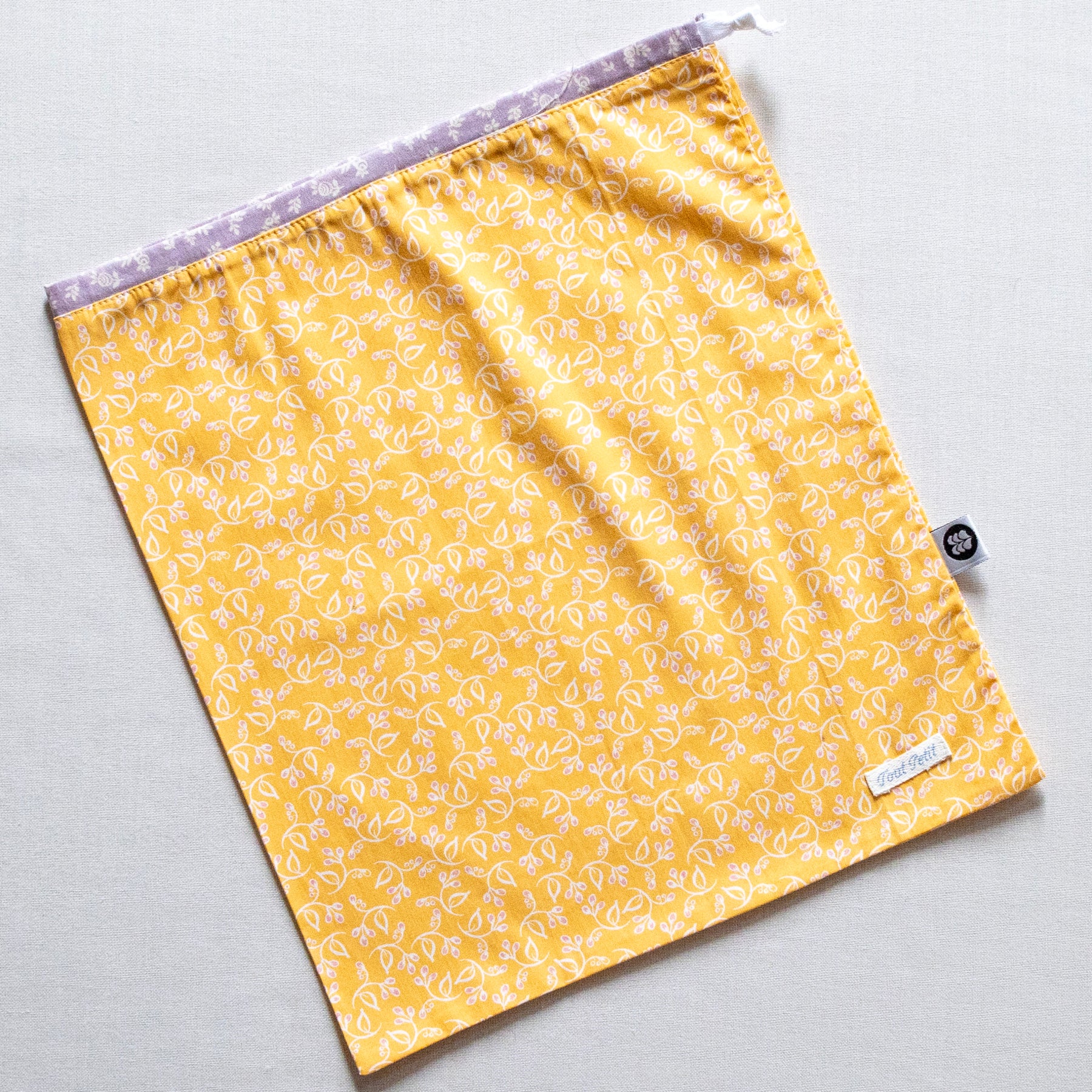 Denne smukke string-bag er syet på Ærø af Sophie fra Tout Petit Atelier. Hver pose er helt unik i sin sammensætning af farver og mønstre og syet i de fineste Liberty-stoffer kombineret med smukke bomuldsstoffer.