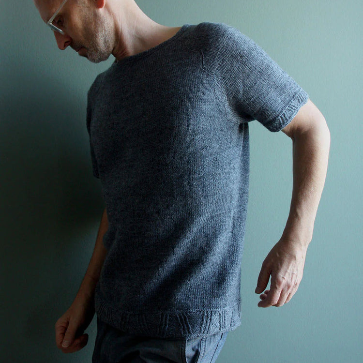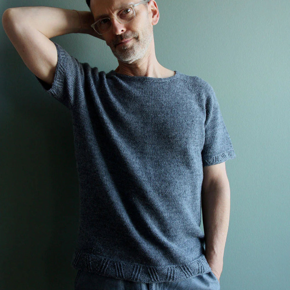 Banister Tee strikkes i glatstrik med enkle snoninger, raglanudtagninger og japanske vendepinde.