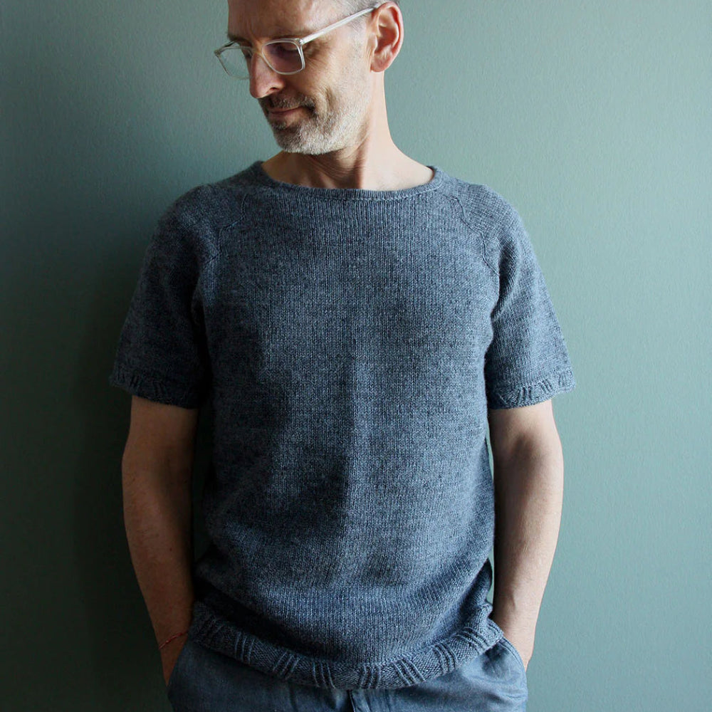 Med et GARNA garnkit til Banister Tee af RUTHEMANN får du GARNA luksusgarn til en maskulin let sommertrøje, der kan strikkes med enten korte eller lange ærmer.
