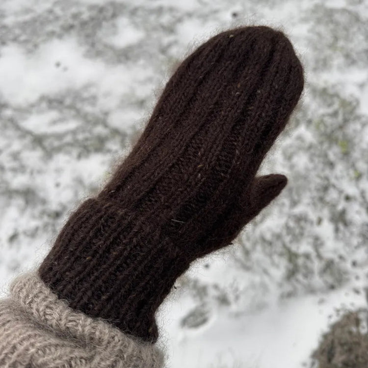 Vi strikker DUAL_LOOP_MITTENS i 1 tråd Nobilis 2 - 100% superfine, blød, kradsefri lammeuld fra Skotland sammen med 1 tråd Cumulus - florlet, blødt cashmeresilke fra Italien.