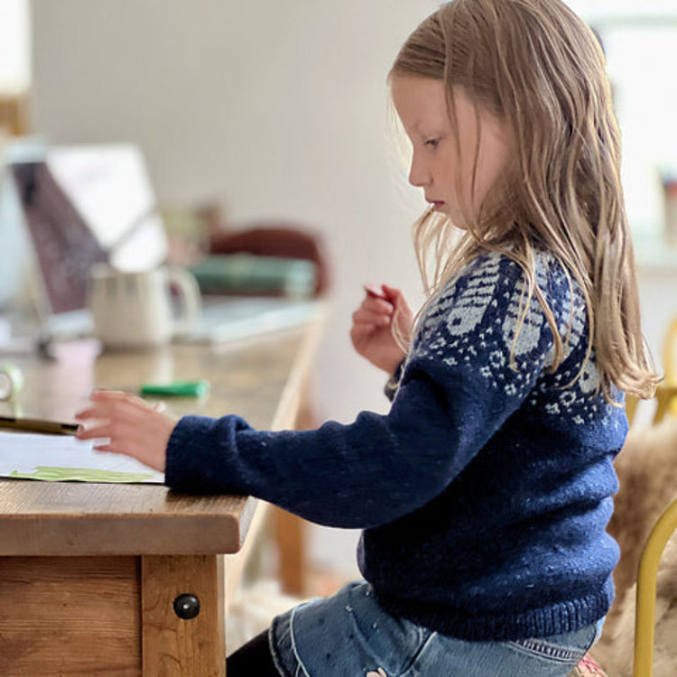 Med et Garna strikkekit til Fischers Fritz fra Isabell Kraemer får du luksusgarn og mønster til en sweater med et skønt mønstret bærestykke med fisk.