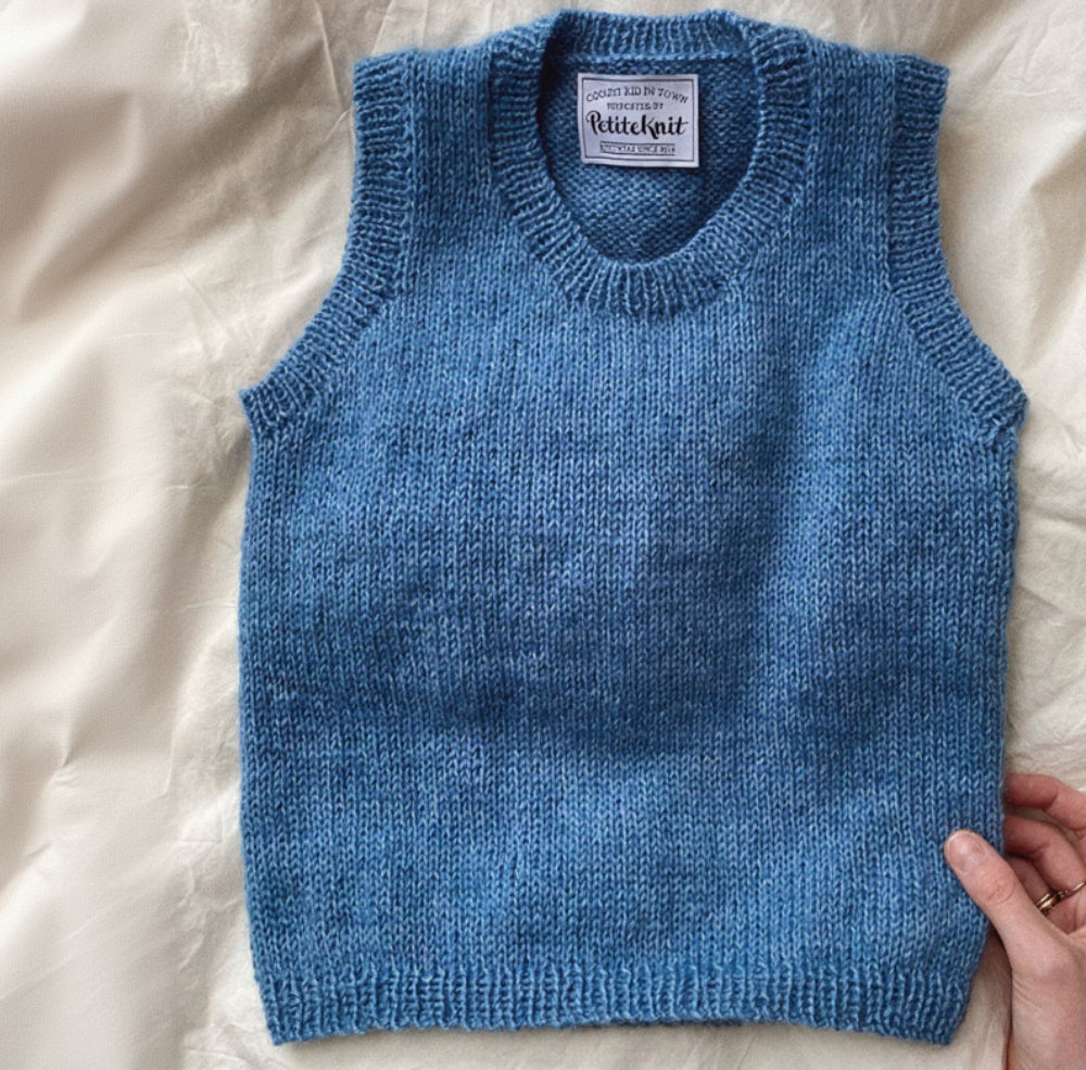 Med et GARNA strikkekit til Stockholm Slipover Mini fra PetiteKnit får du luksusgarn og mønster til en lækker sag af en vest til de yngste.