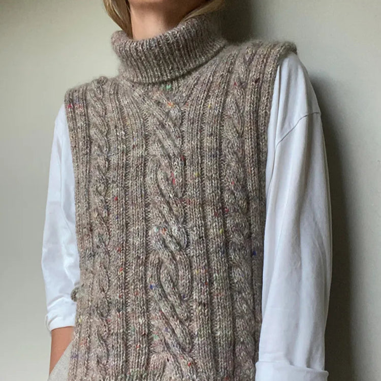 Med et GARNA garnkit til TWIST_LOOP_COLLAR af OTHER LOOPS får du GARNA luksusgarn til en vest strikket i rib med elegante snoningsdetaljer, bindebånd i siderne og høj krave.